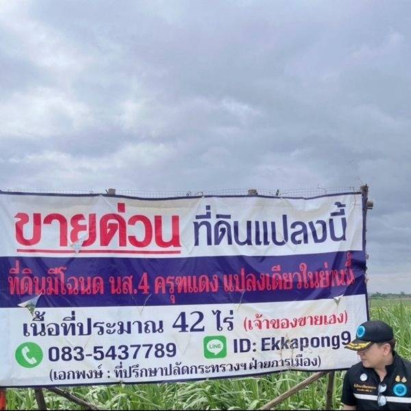 ด่วน ขายที่ดินแม่สอด-ห้วยกระโหลก จำนวน42ไร่ ***(ที่ดินมีโฉนด นส.4 ครุฑแดงแปลงเดียวในย่านนี้) . **หมู่บ้านห้วยกระโหลก หมู่ที่2 ตำบลแม่ปะ อำเภอแม่สอด จังหวัดตาก **ต่อรองราคาได้ เจ้าของขายเอง - ห่างจากตัวเมืองแม่สอดประมาณ 3 กิโลเมตร - ห่างจากสะพานแม่น้ำเมย 6 กิโลเมตร - ถนนสร้างใหม่(ลาดยาง) มาที่ที่ดิน 100 เมตร สามารถวิ่งไปตลาดแม่น้ำเมยสอง 3.5 กิโลเมตร ถนนตัดผ่านไปถึงตัวเมืองตาก - ห่างจากท่าอากาศยานนานาชาติแม่สอด 7 กิโลเมตร - ห่างจากโลตัสแม่สอด 8 กิโลเมตร - มีสระน้ำในที่ดิน (สระใหญ่2สระ) . “ ไร่ละ/1,800,000บาท (ต่อรองราคาได้) “ . ***ติดต่อ*** คุณ เอกพงษ์ พุ่มเกษม LINEไอดี : ekkapong9 โทร : 083-5437789 .