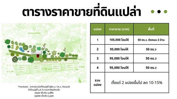 *** ขายที่เปล่า #ราคาโคตรถูก #1แสนก็ซื้อได้แล้ว #ทำบ้านสวน ทำสวน Minimal *** #คนกำลังหาที่สร้างบ้าน #บรรยากาศร่มรื่น #ไร้มลมิษ #สั่งสร้างบ้านได้ ตำบลท่าลาด อำเภอวารินชำราบ จังหวัดอุบลราชธานี . - ที่ดินโฉนด นส.4.จ (โฉนดครุฑแดงทุกแปลง) - ห่างถนน วาริน-ศรีสะเกษ เส้น 226 แค่ 4 นาที - อยู่ในชุมชนใกล้เมือง - ห่างตลาดบุ่งหวาย 5 นาที - ห่างโรงพยาบาลวาริน 12 นาที - ห่าง Lotus BigC 7-11 5 นาที - ห่างโรงงานเย็บผ้า 9 นาที - ไฟฟ้า - น้ำประปาหมู่บ้าน - ติดถนนคอนกรีต ติดถนนทุกแปลง - มีเพื่อนบ้าน - เดินทางสะดวก - ราคาจับต้องได้ (รวมโอน) . รหัสแปลง 1 พื้นที่ 0 ไร่ 0 งาน 50 ตร.ว. ราคา 105,000 บาท รหัสแปลง 2 พื้นที่ 0 ไร่ 0 งาน 50 ตร.ว. ราคา 95,000 บาท รหัสแปลง 3 พื้นที่ 0 ไร่ 0 งาน 50 ตร.ว. ราคา 95,000 บาท รหัสแปลง 4 พื้นที่ 0 ไร่ 0 งาน 50 ตร.ว. ราคา 95,000 บาท . สนใจติดต่อโจ้ ได้เลยค่ะ 0887185800 // 0661125660 . #คนกำลังหาที่สร้างบ้าน #1แสนก็ซื้อได้แล้ว #บรรยากาศร่มรื่น #ไร้มลมิษ #ที่ดินวาริน #ที่ดินอุบล #ที่ดินใกล้เมือง #ราคาโคตรถูก #ทำบ้านสวน . https://www.facebook.com/howtohpmeloan/posts/pfbid0MWeAh4JZjKPC1NMJsRuZa1gYew4xp2hXJtUX77AVptn4eDrdxB6H6ezqx6BnXXNxl .